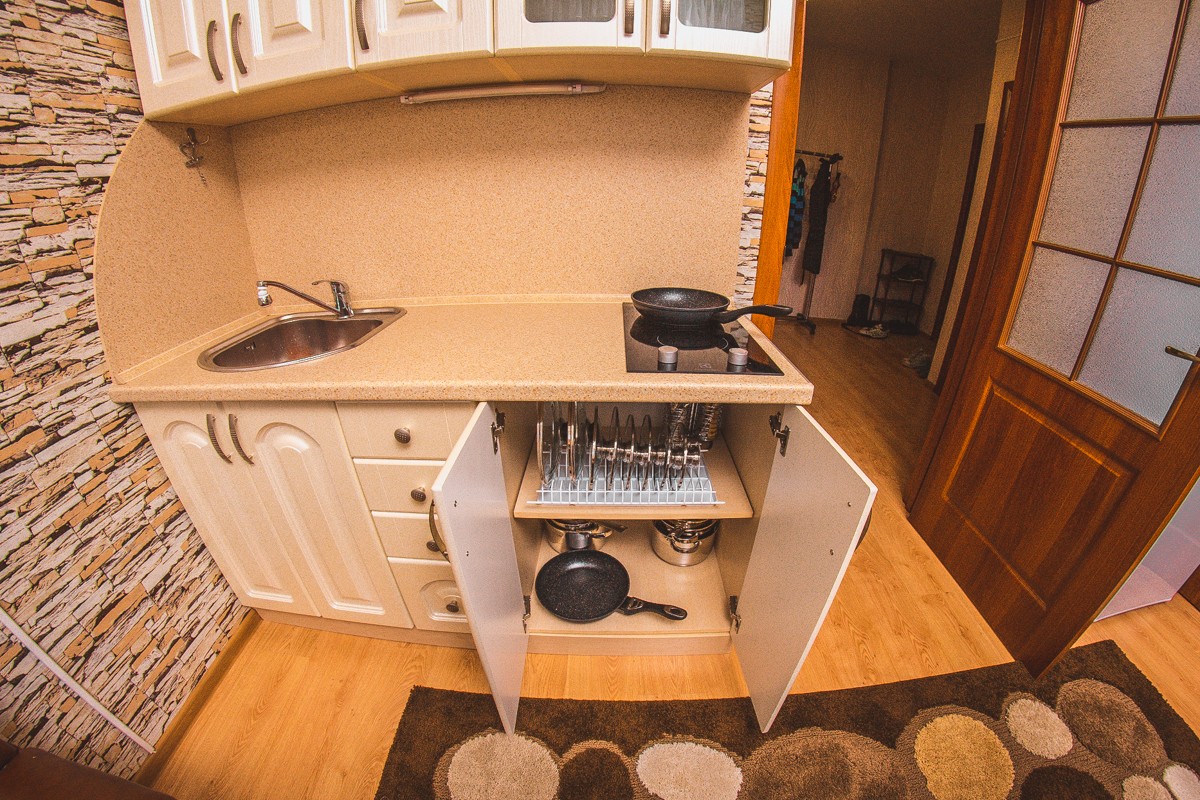 • кухня оборудована всем необходимым для приготовления и разогрева еды, так же предоставляем чай, сахар.