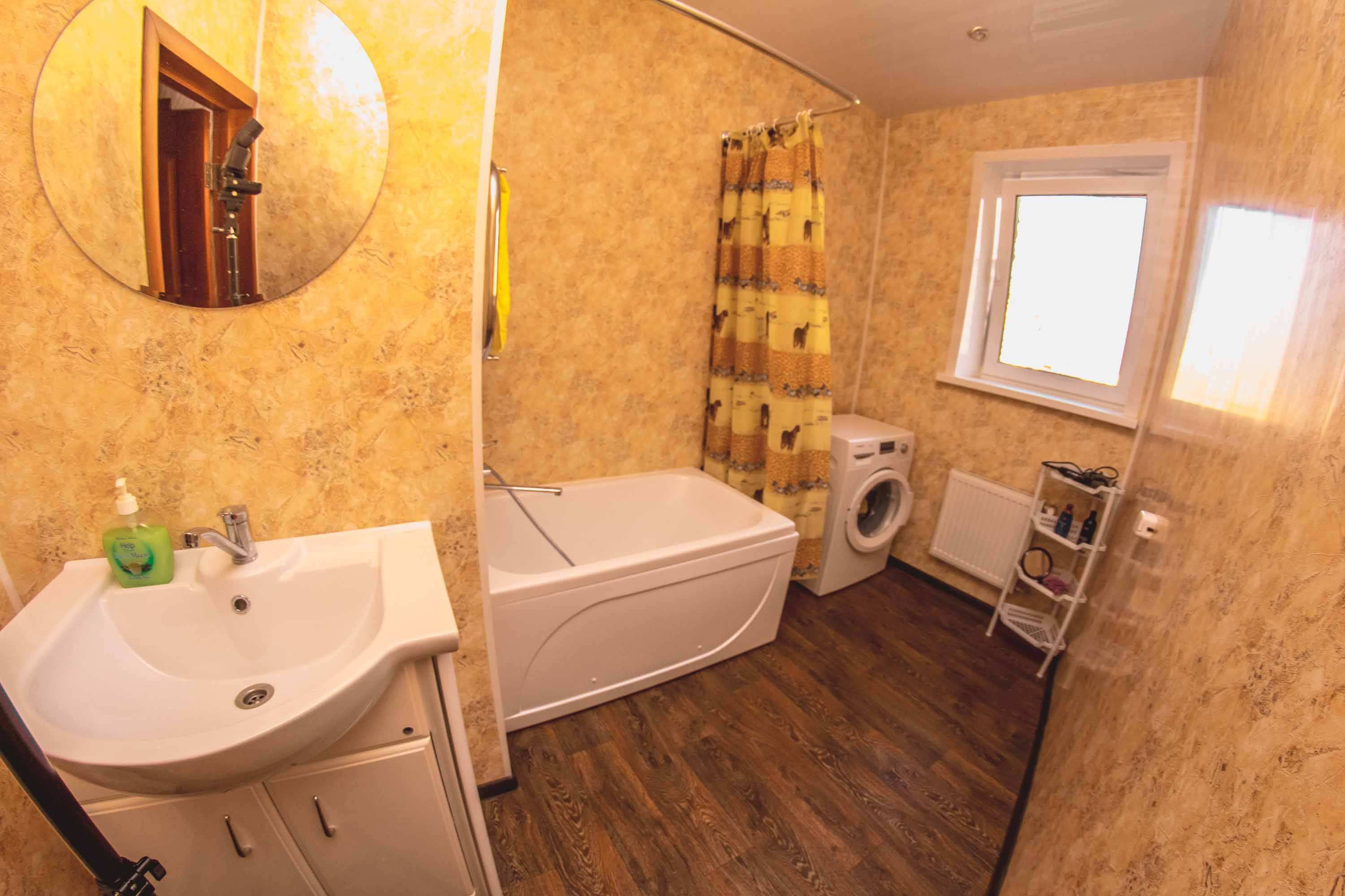 • в ванной: горячий душ без перебоев, стиральная машина, фен, полотенце.